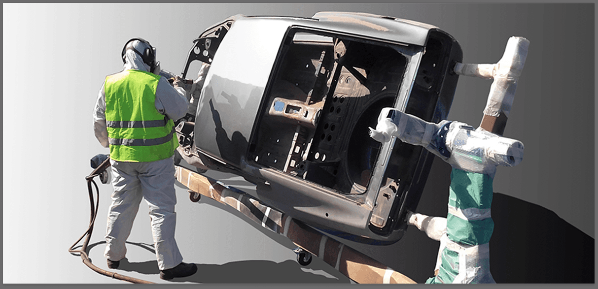 Aerogommage des supports métalliques et composite. Aucune altération du support. Carrosseries, Crémones, blocs moteurs, persiennes, matériel agricole, etc...